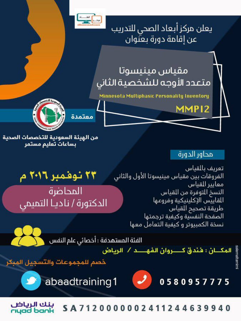 يقدم مركز أبعاد للتدريب الصحي دورات متنوعة وبساعات معتمدة من الهيئة السعودية للتخصصات الصحية علي هيئة دورات تدريبية حيث تقدم دورات تدريبية متخصصة لتشخيص الاضطرابات النفسية والعلاج النفسي للمختصين في علم النفس والطب النفسي والخدمة الاجتماعية وكذلك نقدم دورات تدريبية لغير المختصين في علم النفس ممن يحتاج بحكم طبيعة عمله الي بعض المهارات النفسية مثل المحامين والقضاة والطلاب المبتعثين والمقبلون علي الزواج والمعلمون وغيرهم وكذلك نقوم بتقديم برامج تدريبية وقائية وعلاجية للعاملين في المؤسسات الحكومية والخاصة